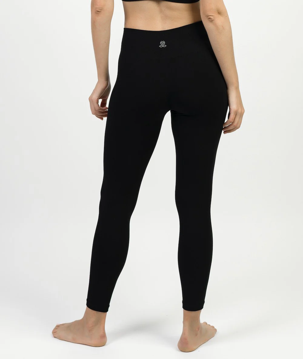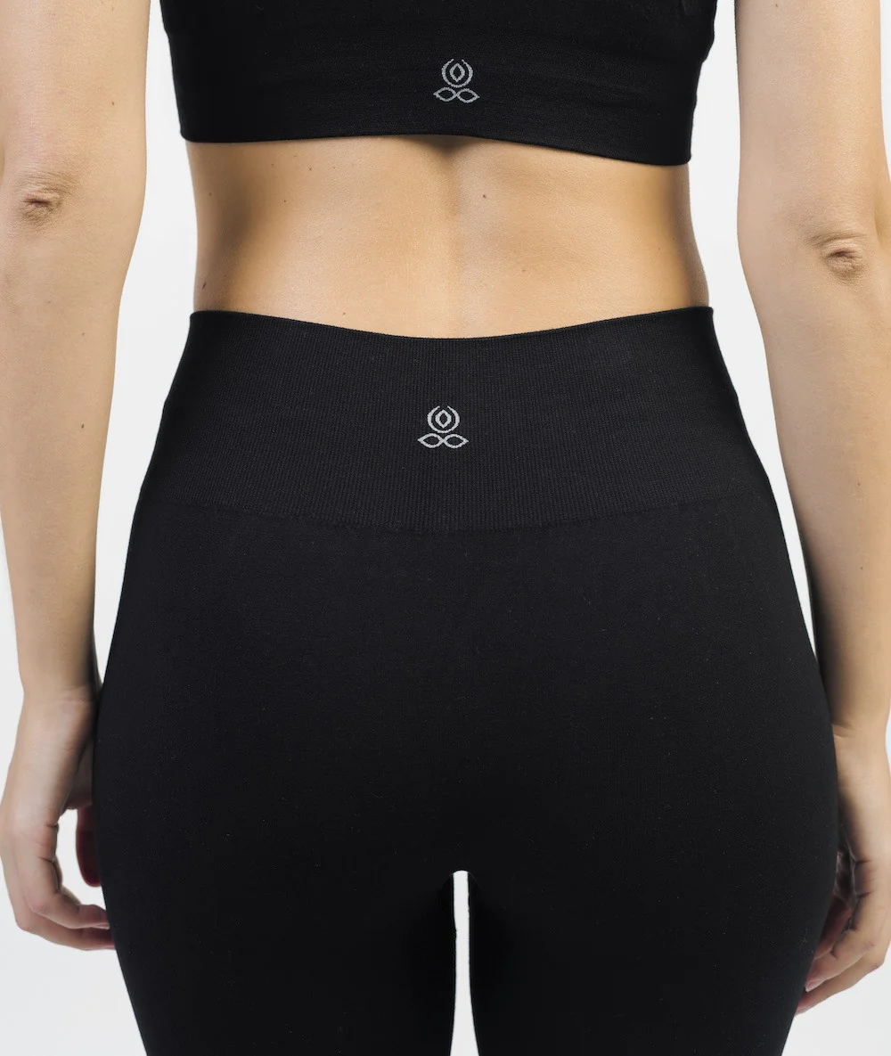 Leggings doux et confortable en fibre de bambou avec ceinture en côtes pour un bon maintien. Large bord côte en bas de jambes, marquage ceinture devant et dos en jacquard, montage sans couture « seamless ». Traitements anti-perspirant.