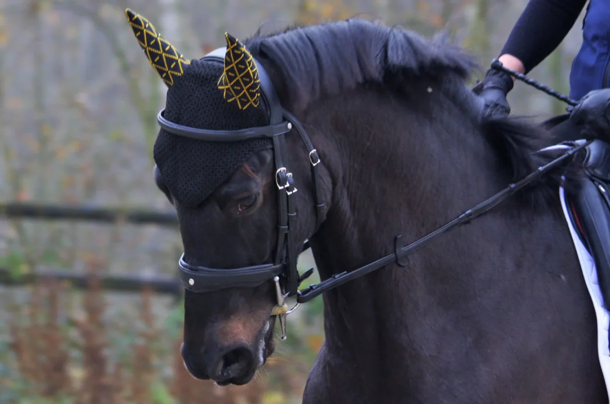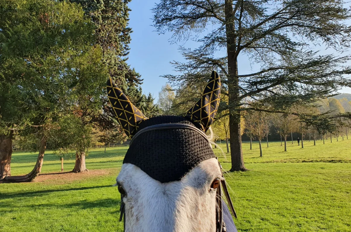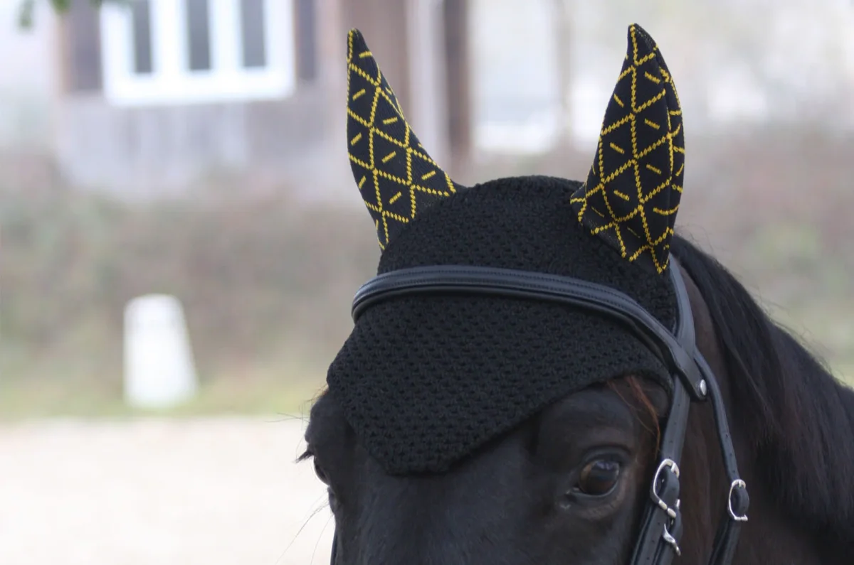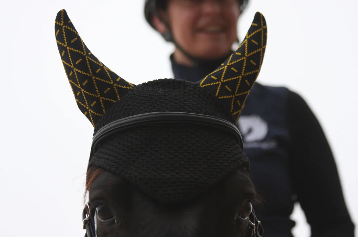Le bonnet INFI-KNIT noir all-over jaune d’or est un incontournable TACANTE. Développé pour compléter notre tapis de selle jaune d’or il a déjà séduit bon nombre de cavaliers. Sa maille technique et sa coupe unique vous garantissent une bonne fixité sur la tête du cheval. Il se lave en machine et sèche très rapidement. Ecoresponsable il est fabriqué en partie à partir de polyester recyclé Newlife®.