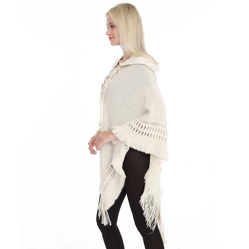 Ce qui est intéressant, c’est que le crochet travaillé apporte vraiment cette touche bohème sans tomber dans le cliché, vous voyez ? Et puis, la capuche avec ses cordons ajustables, c’est à la fois pratique quand le vent se lève et stylé quand on la porte en mode décontracté. Les franges généreuses sur tout le pourtour, elles donnent du mouvement à l’ensemble, c’est plutôt élégant. Vous pouvez la porter avec un jean et des boots pour un style casual, ou alors – et c’est là que ça devient intéressant – l’associer à une petite robe et des talons pour quelque chose de plus travaillé. Disons que c’est une pièce qui s’adapte vraiment à vos envies du moment.
