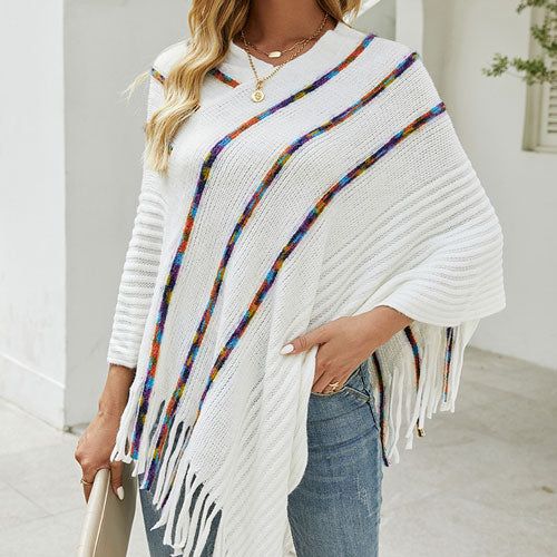 Ultra doux, ce poncho orné d’une frange deviendra votre meilleur allié cet hiver. Les jolies rayures viendront sublimer votre tenue printanière automnale ! Unique en son genre, il comblera votre tenue casual et élégante.