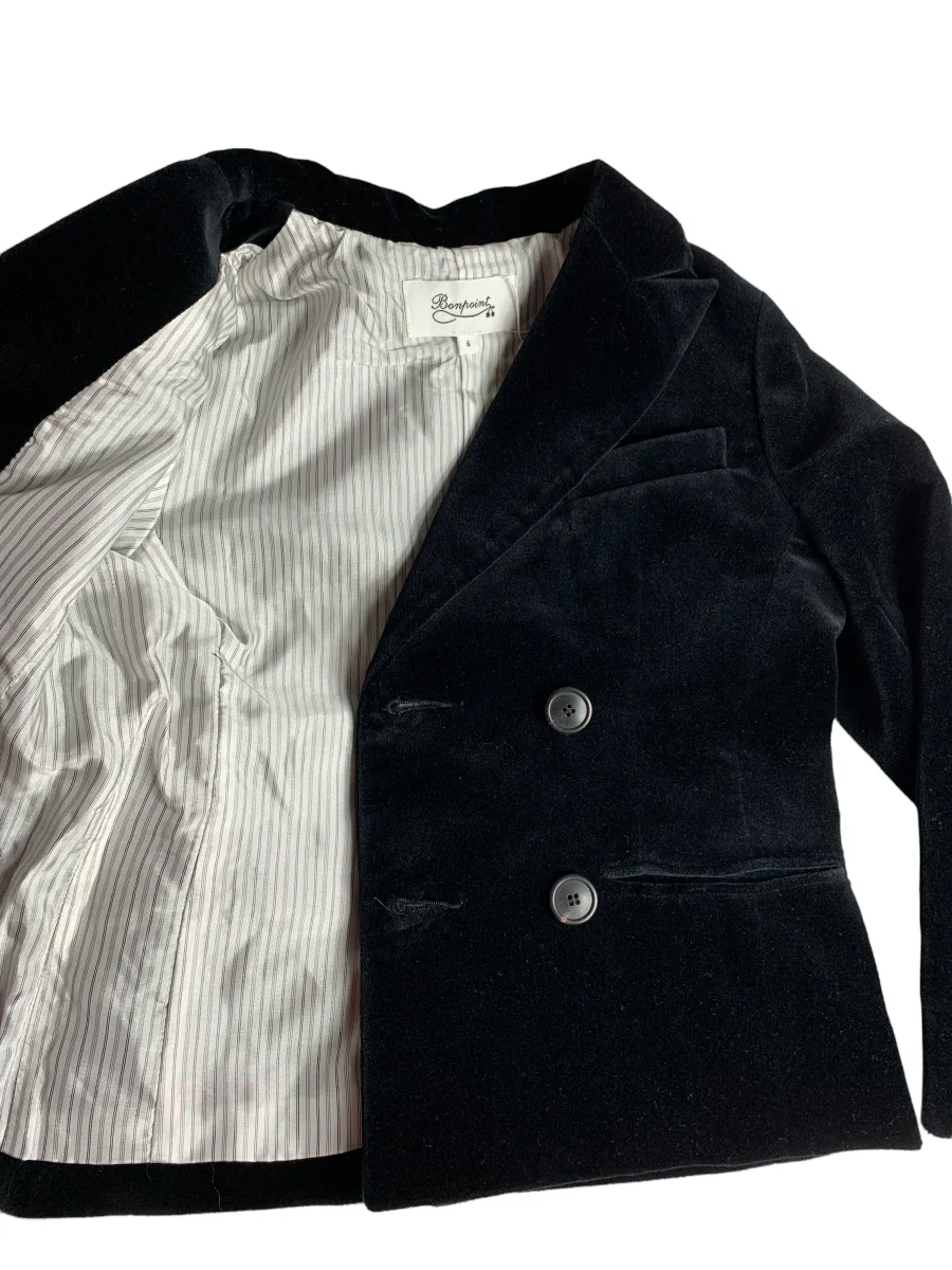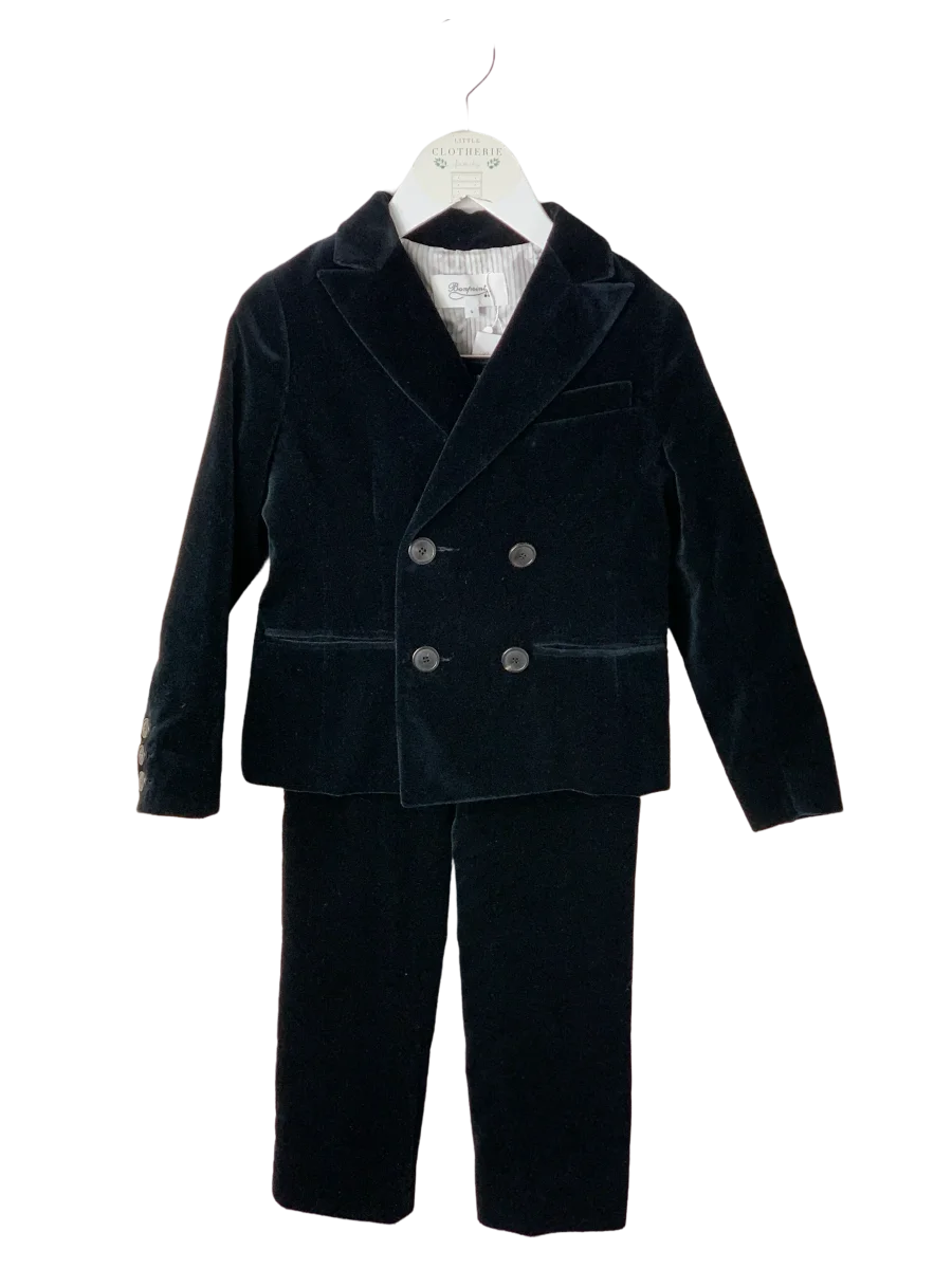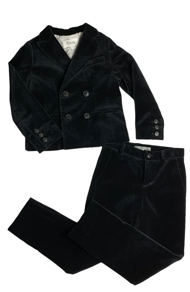 Costume Bonpoint en velours noir double boutonnage, entièrement doublé, coupe droite