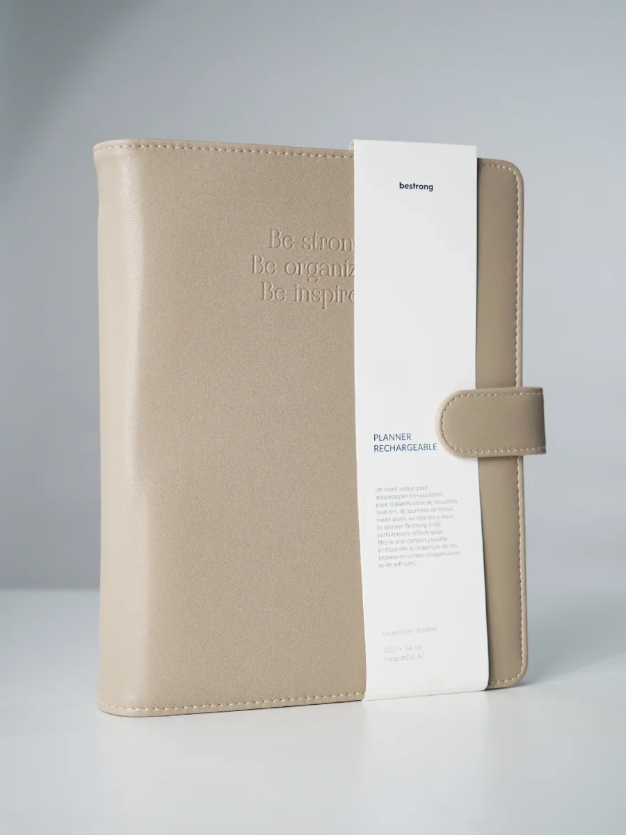 Ta cover de Planner a Ă©tĂ© pensĂ©e pour accueillir un maximum de jeux de pages, intercalaires, tableaux de bord, pochettes de rangement, autocollants…