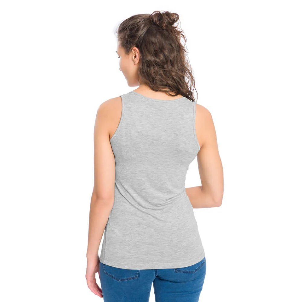Débardeur gris pour femme en fibres de cellulose (Lyocell), et fabriqué en Europe.