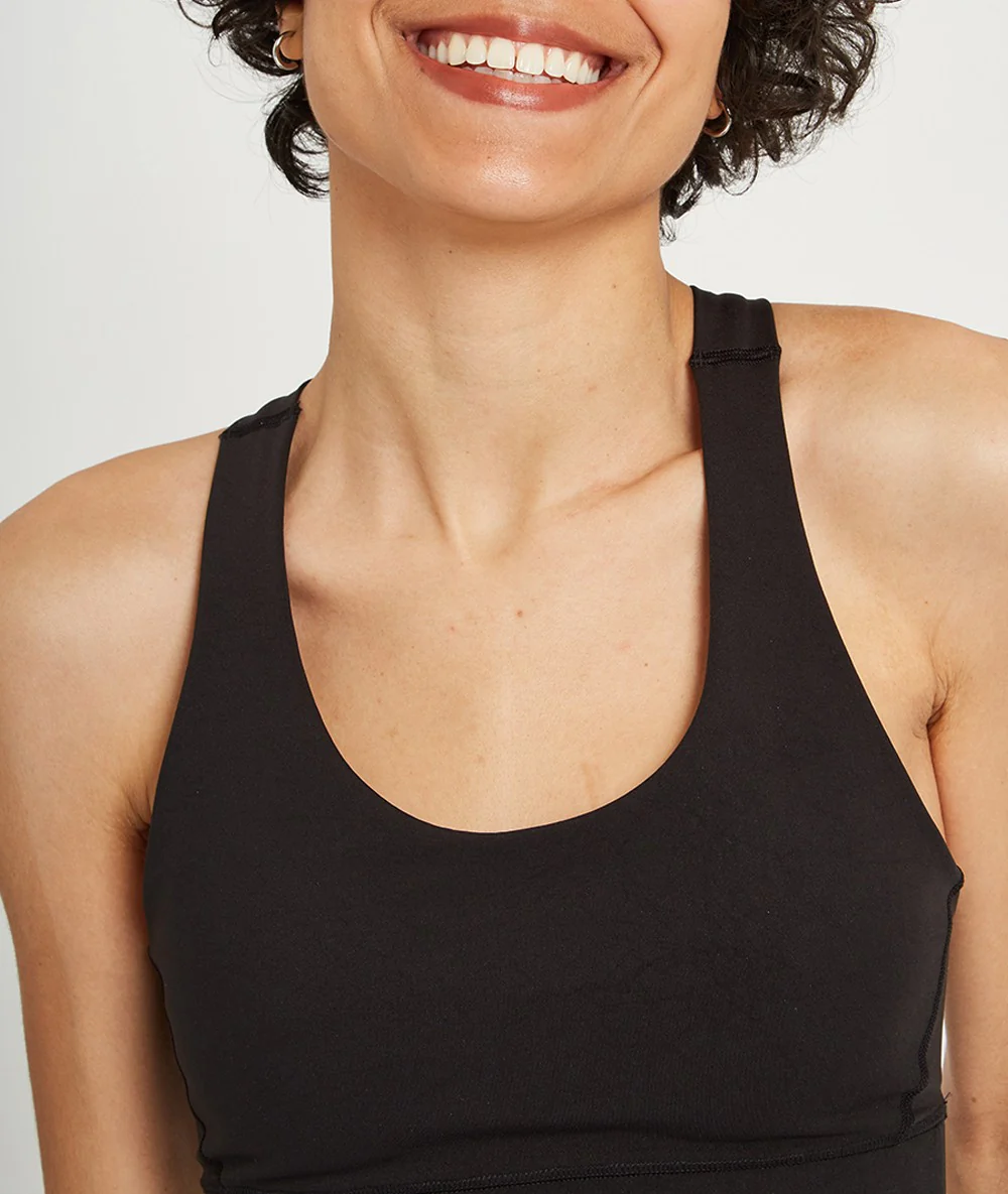 Maintien et délicatesse avec notre brassière de yoga pour femmes en matière coupée-cousue. Composée majoritairement de Polyamide recyclé ECONYL®, provenant de filets de pêche transformés, elle dispose de découpes idéalement disposées pour un joli gable. Son jeu original de bretelles croisées au dos la rendent féminine. Elle vous protégera également des rayons du soleil grace à son indice UPF 50+.
