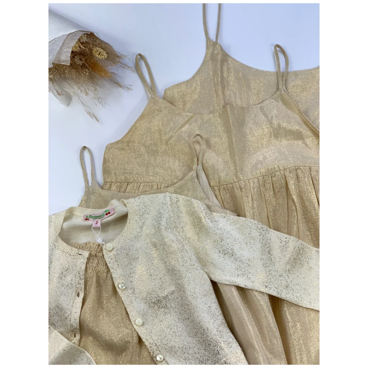 Profitez de cette offre Fête des mères : 2 robes (taille Adulte + taille Fille) et bénéficiez de 25% de réduction sur l’ensemble. Robe longue dorée, à la coupe ample estivale, en coton fil de lurex doré, à fine bretelles, fermeture au dos par 2 petits boutons Bonpoint Disponible en taille adulte au choix taille […]