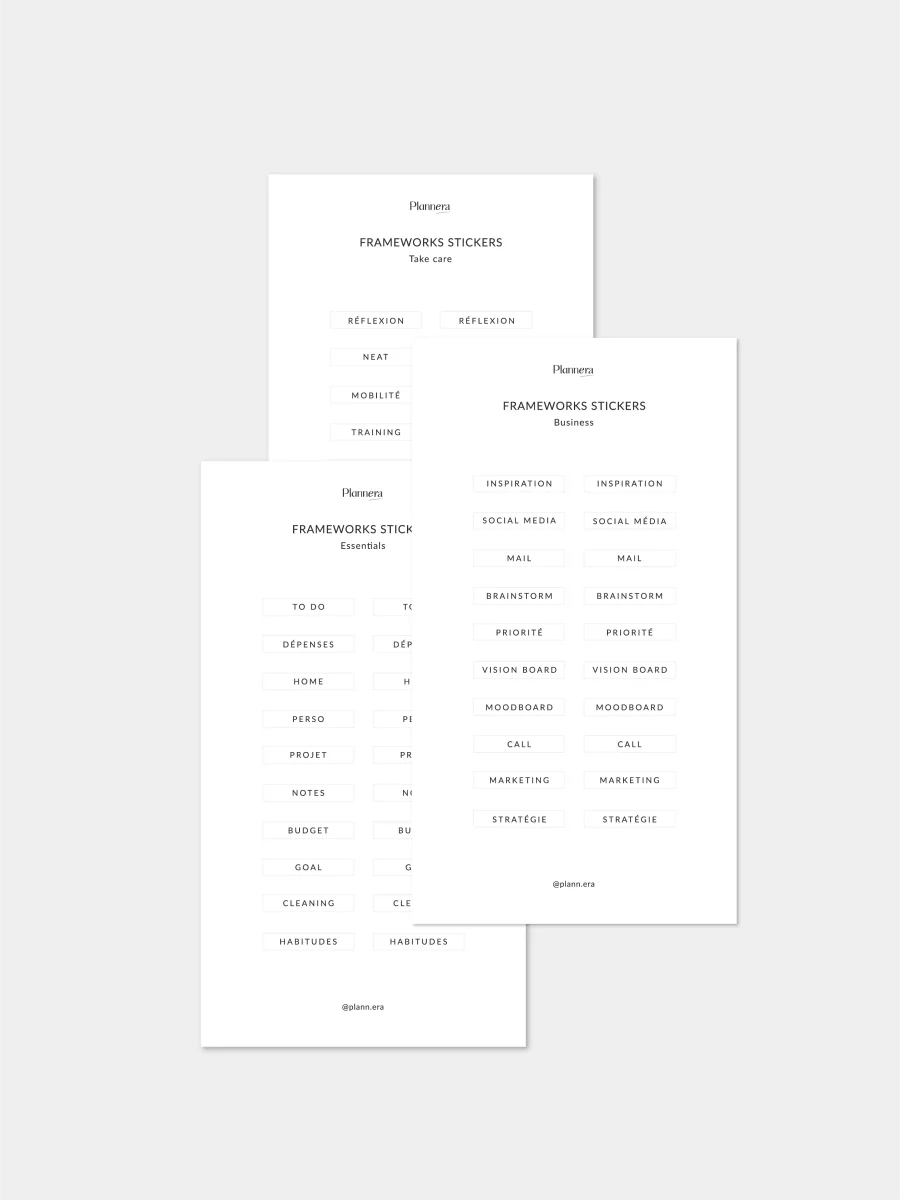À positionner dans ton planner ou sur tes intercalaires transparentes, ces stickers minimalistes t’accompagneront dans la mise en place de ton organisation.
