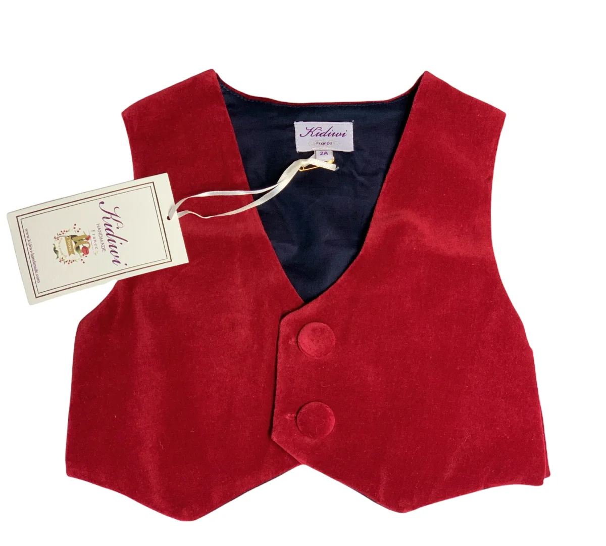 Gilet de Cérémonie Garçon velours rouge KIDIWI 2 ans