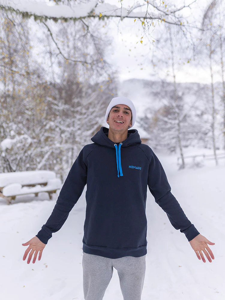 Inspiré de l’univers du streetwear, le hoodie Nomads est résolument sportif grâce à ses cordons bleus turquoise. Pensé pour être ultra-confortable et doux.