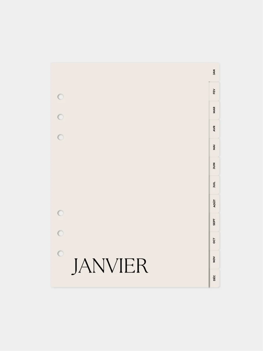 Ces intercalaires mensuels rigides au fini mat t’aideront Ă  organiser et structurer au quotidien les diffĂ©rentes sections de ton planner. IdĂ©al pour une circulation efficace.