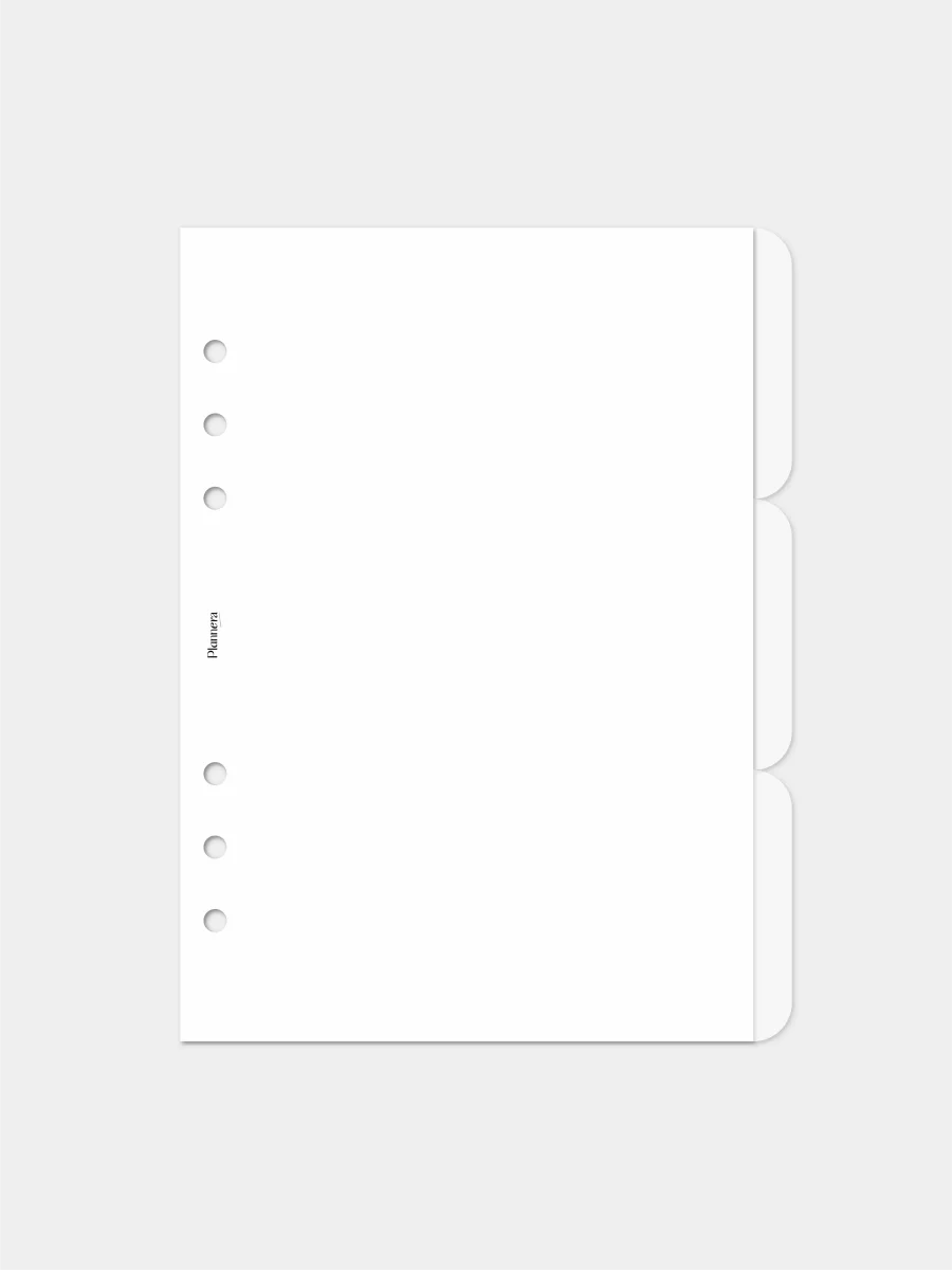 Ce set de 6 intercalaires rigides et transparents au fini mat t’aideront Ă  organiser et structurer au quotidien les diffĂ©rentes sections de ton planner. Il peut ĂŞtre complĂ©tĂ© avec les stickers pour nommer les diffĂ©rentes sections que tu souhaites crĂ©er. IdĂ©al pour une circulation efficace. Description : A5 PerforĂ© Recto-Verso 6 intercalaires