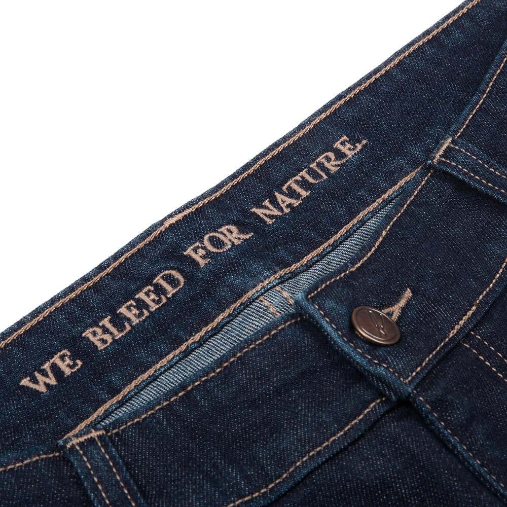 This jeans is a keeper. Due to the special mix out of organic cotton and spandex, it is not just durable, but also very comfortable. Just put in on and feel great – you will never want to wear another pair again. Thanks to the stylish vegan patch it is also 100% animal friendly. #saynotoleather Our brand new 2.0 models are a developed version of your favorite bleed jeans. The new styles are now produced in Portugal, of course under highest GOTS-standard.
