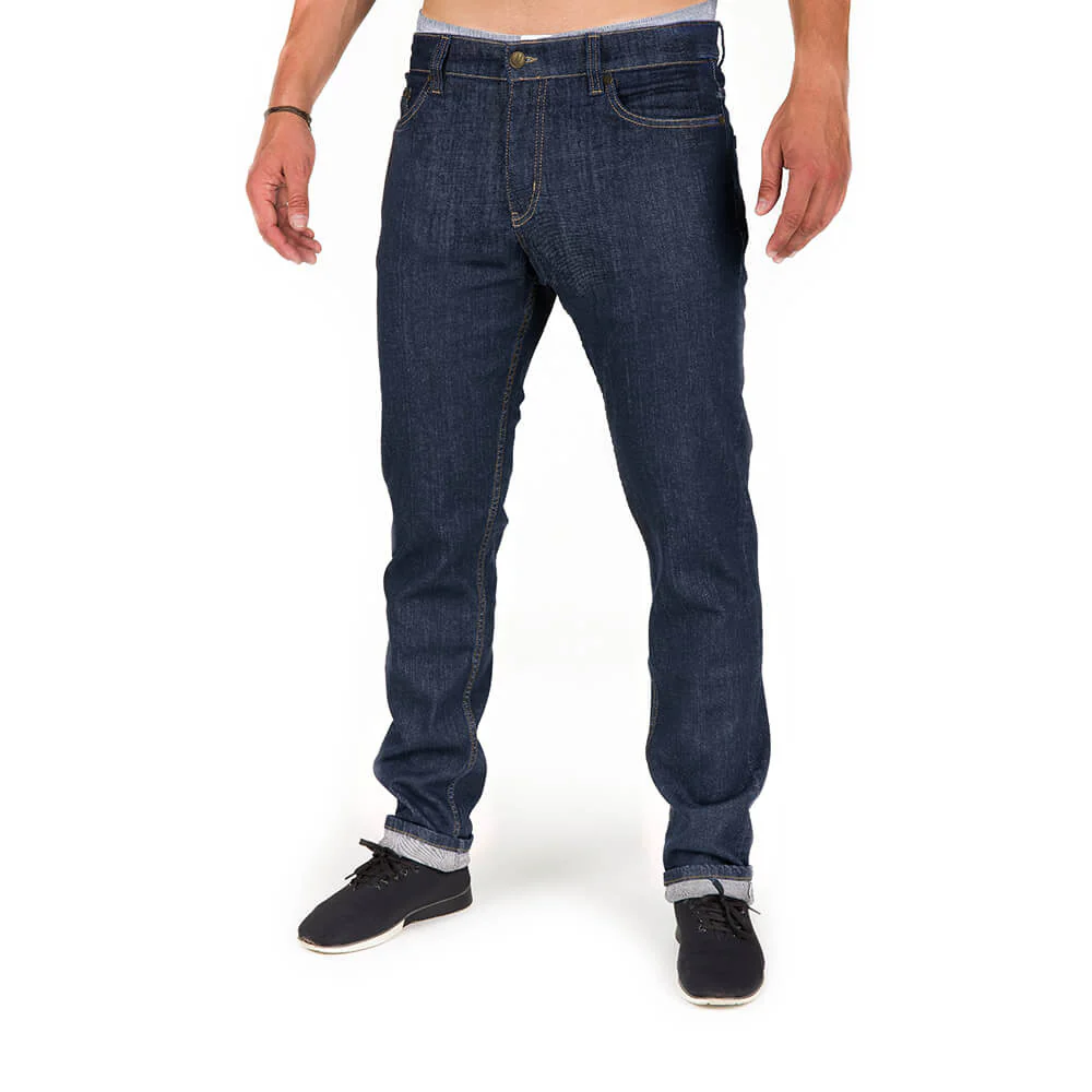 Jean bleu pour Homme en coton bio certifié GOTS, fabriqué en Europe.