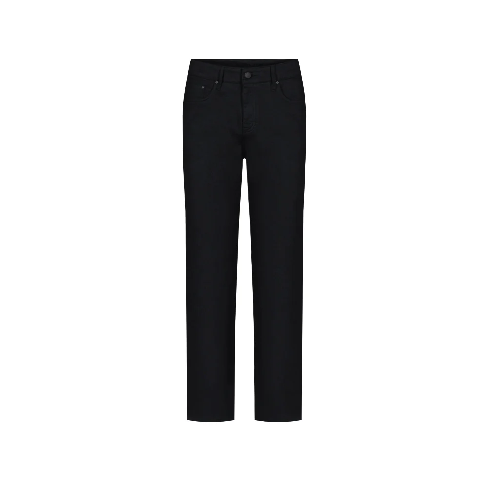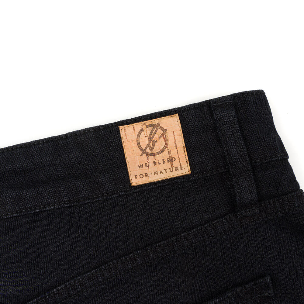 Jean noir pour femme en coton bio, certifié GOTS et fabriqué en Europe.