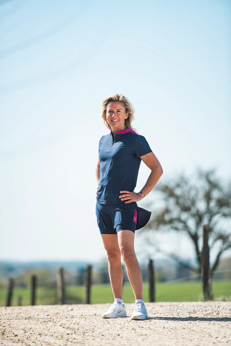 Son style résolument féminin et sportif est assuré par le tissu léger et souple recouvrant le cycliste. Légèrement compressif, le tissu de nylon régénéré ECONYL® du cycliste offre un maintien parfait durant tous vos efforts.