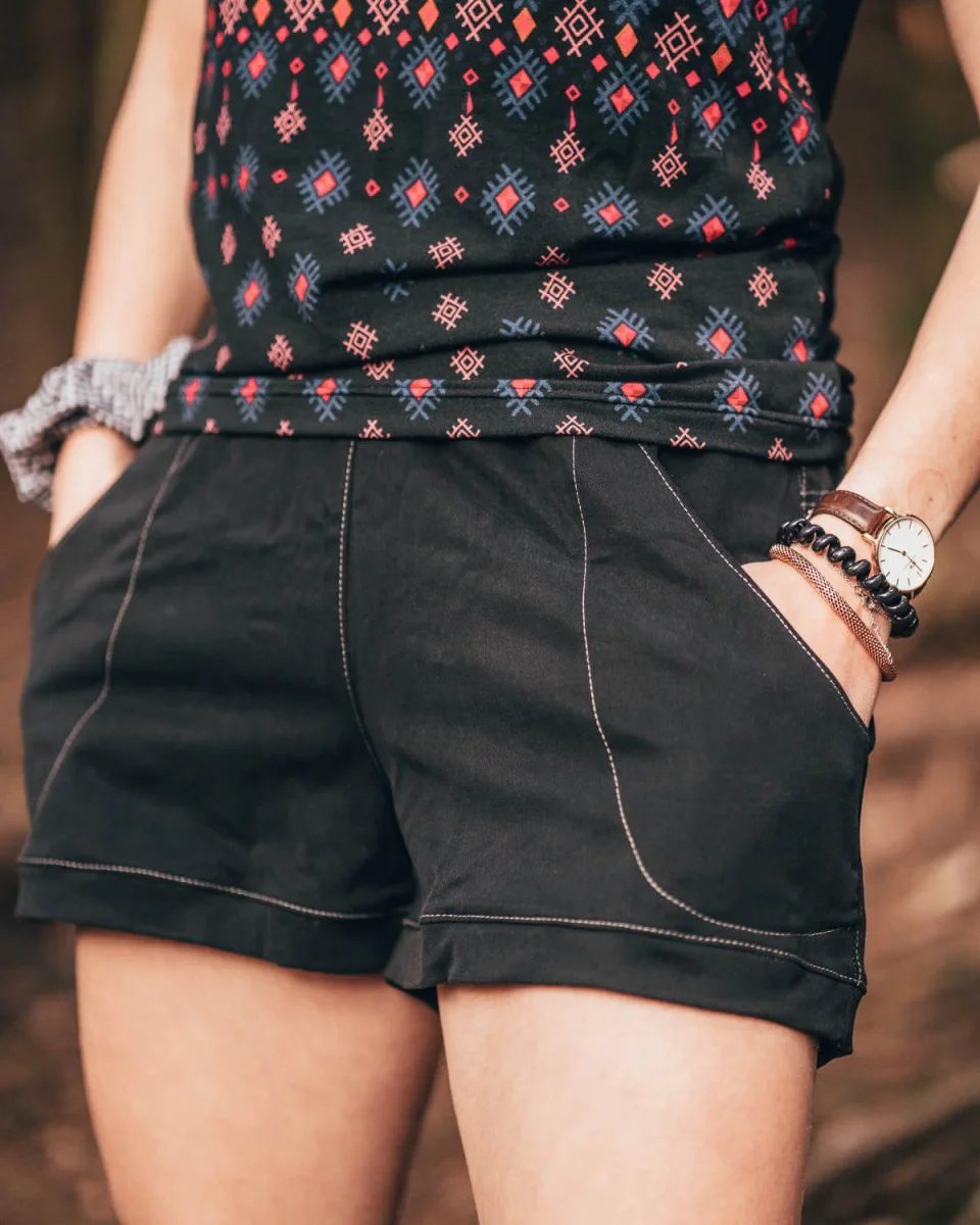 Entre mode urbain et sport d’extérieur, LE SHORT EN BOIS ANAËLLE a été conçu pour être confortable mais élégant.