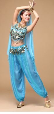 LID Costume de danse orientale comprenant un dessus, un pantalon, un voile, un bijou de tête et un bracelet