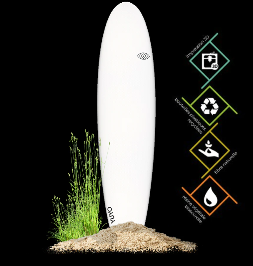 Yuyo propose une alternative écologique et responsable aux planches de surf traditionnelles. Imprimées en 3D avec des déchets plastiques et stratifiées avec un alliage biocomposite, nos planches sont aussi résistantes et flexibles que des planches classiques, mais contribuent à la préservation du milieu marin.