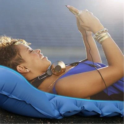 Femme écoute musique matelas gonflable 1 personne confort premium