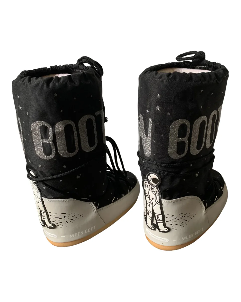 Moonboots Noires à motifs étoiles glitter argent Taille 35_38 Moonboots Tecnica Bon état Durée de location : 8 jours Avis : Edition exclusive canon de l’incontournable Moonboot à louer !