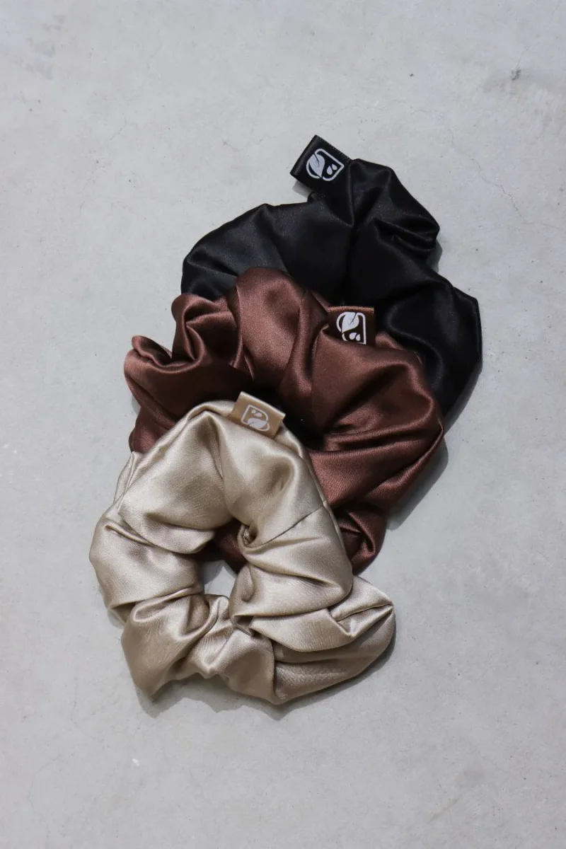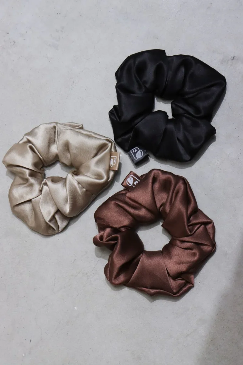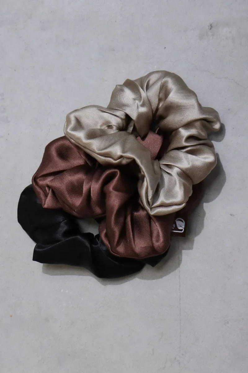 Notre pack comprend trois chouchous dans une douce harmonie de couleurs, parfaite pour compléter toutes vos tenues.