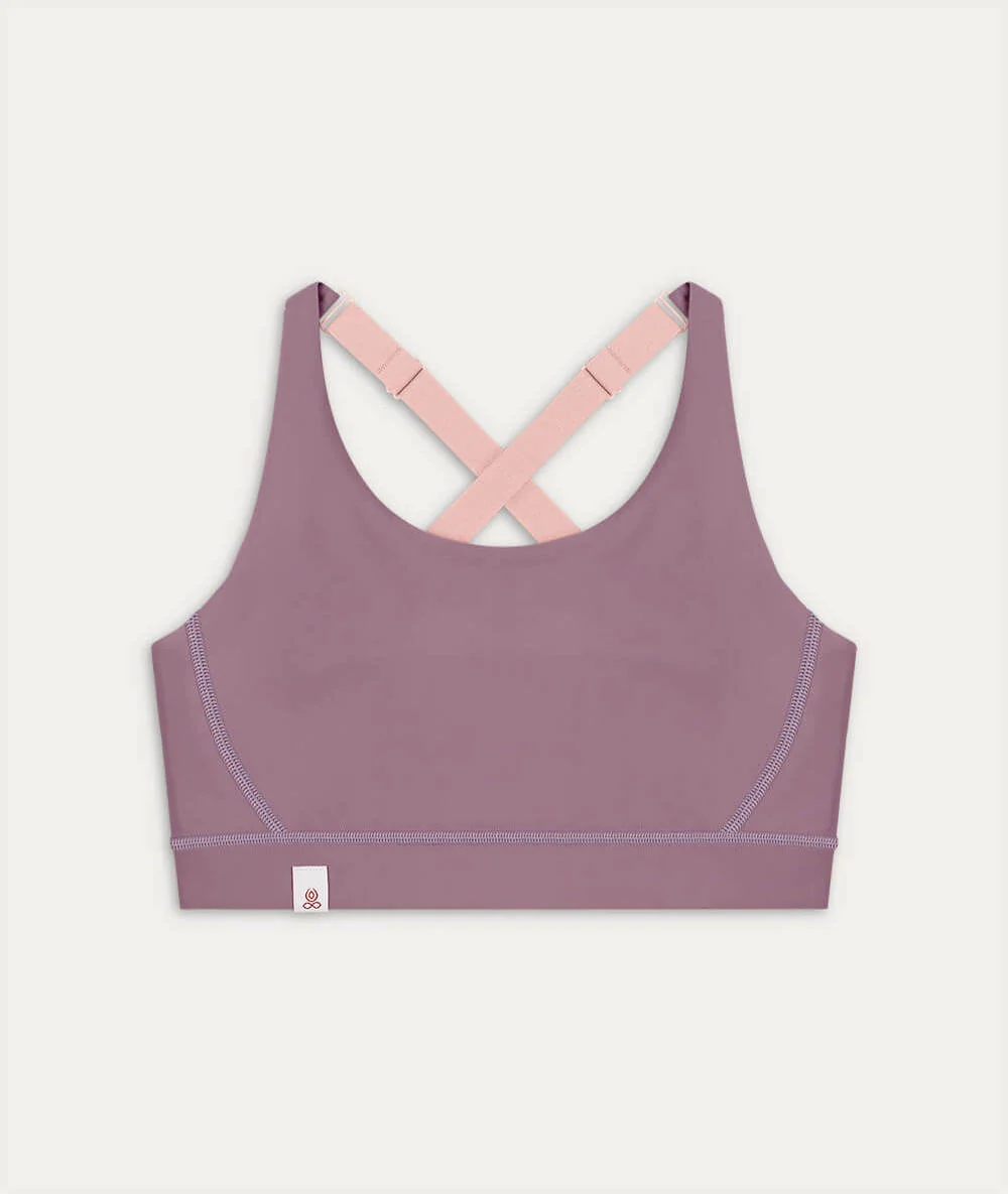 Les bretelles de la brassière mauve sont contrastées comme son legging pour un look estival !