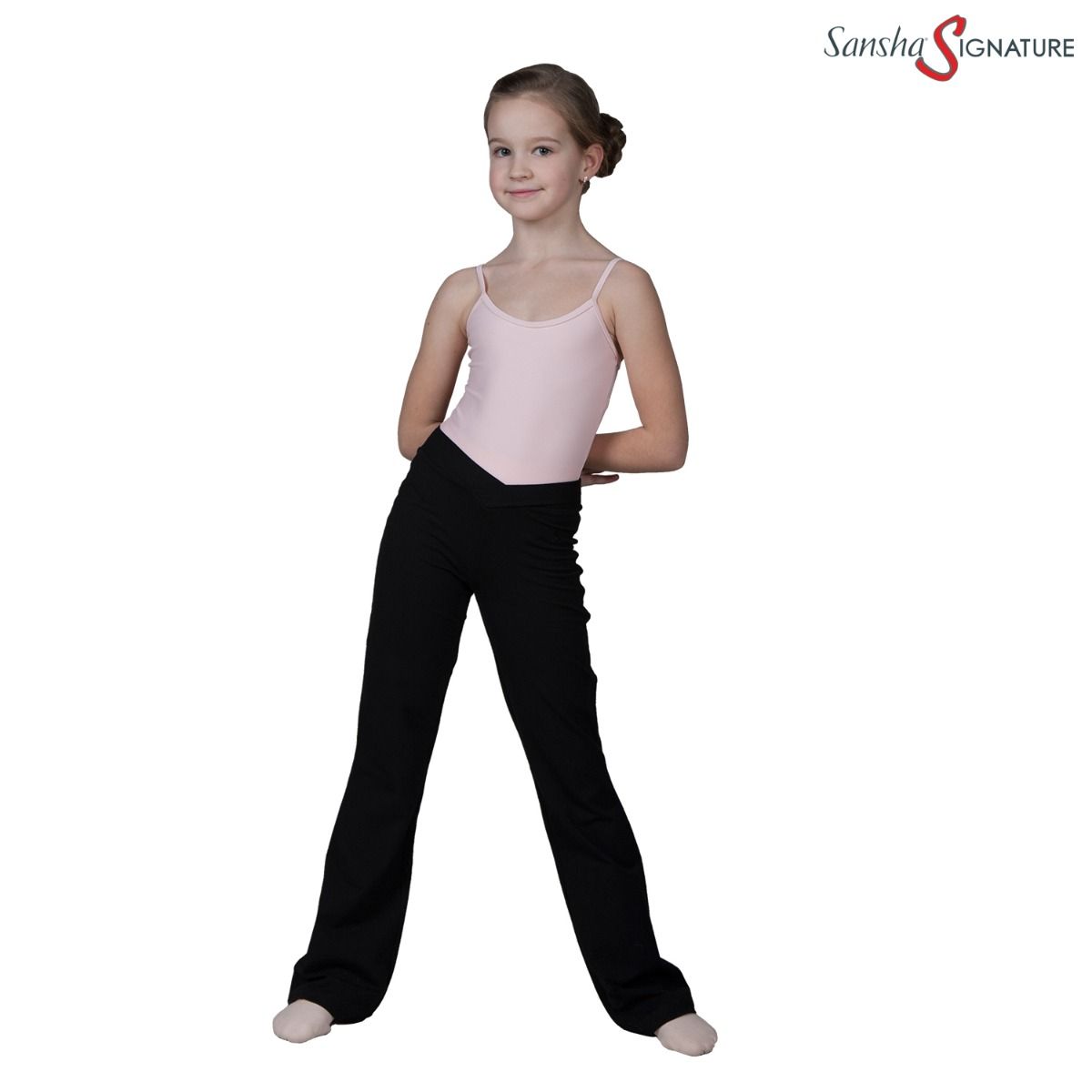 Pantalon coton/lycra, taille élastique coupe V, Broderie `S` ton-sur-ton. Le bas des jambes est légèrement évasé, idéal pour les cours de Jazz.