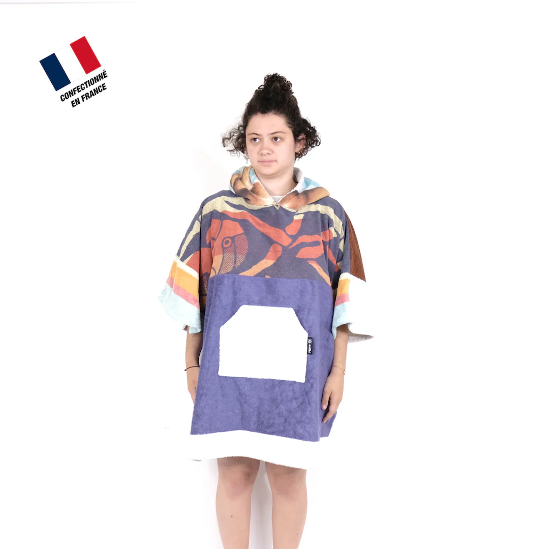 Le poncho 100% upcyclé taille junior (6-12 ans) “Crab Slaw” de la marque Anfibi est l’accessoire idéal pour se changer confortablement avant ou après votre session de longe-côte ou votre mise à l’eau. Chaque modèle existe en un unique exemplaire. Alors, profitez-en, personne ne pourra copier votre style !