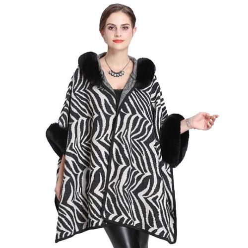 Poncho avec Col et manches en fausse Fourrure pour un style ultra Féminin