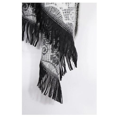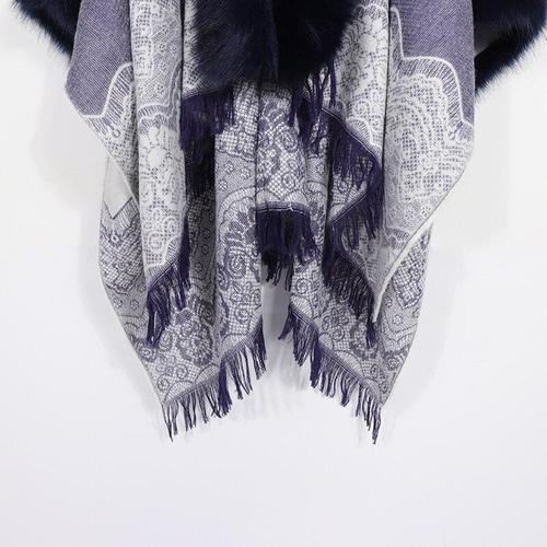 Poncho Fin pour Femme paré d’une frange et d’un long col en Fourrure