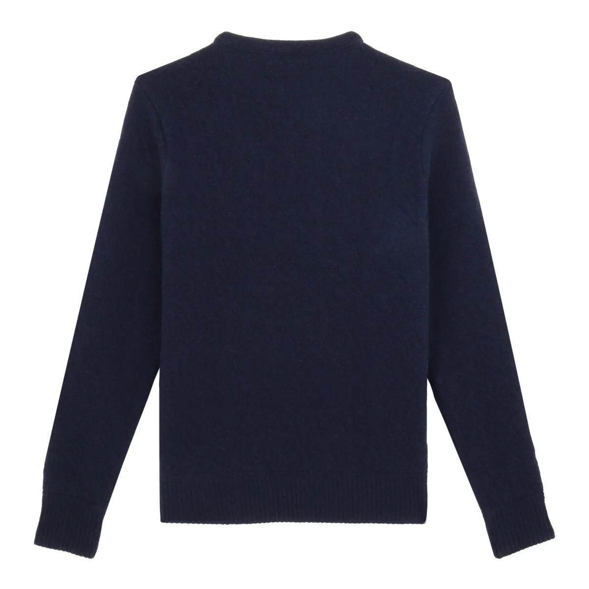 Le fil de laine recyclée est fabriqué en France (Tarn) et le tricotage et la confection sont faits en France (Loire). Les chutes de laine sont triées par couleur et évitent la teinture. C’est toujours de l’eau économisée en plus. Un pull ultra-local !