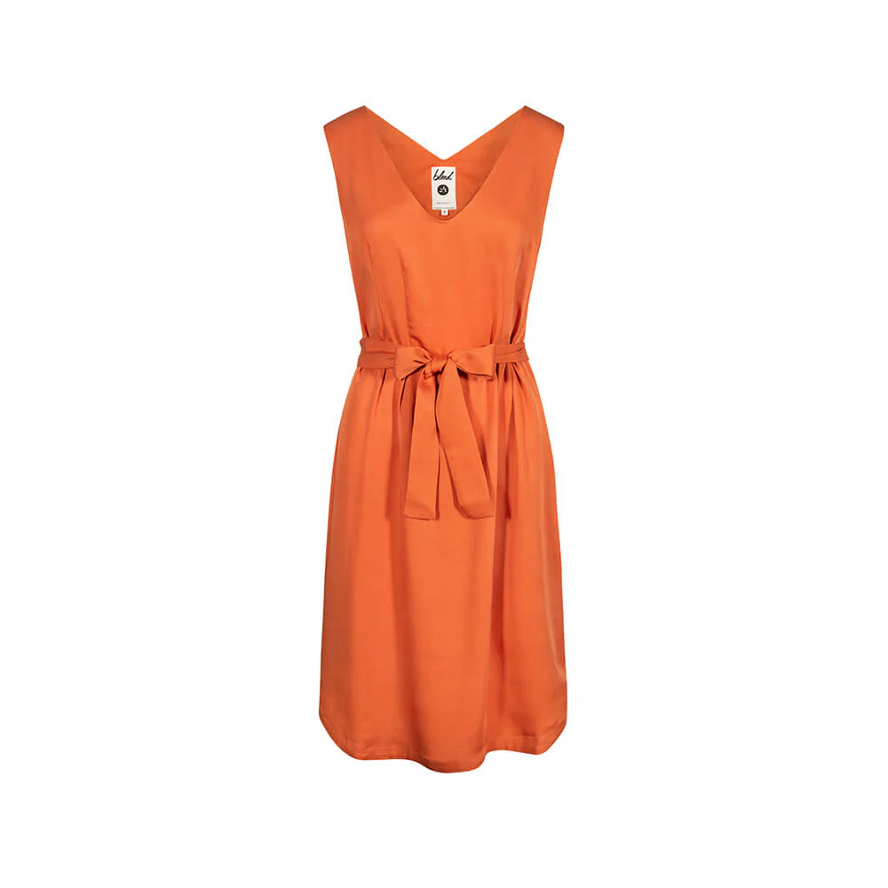 This dress is at least as multi-talented as you are. You can get a chilled everyday look by pairing it with cool trainers, or wear it with more dressy shoes for a going out look. You could also wear it with sandals at the beach. Orange goes with almost every other colour, but neutral earth tones pair with it perfectly. The cooling, structured lyocell (TENCEL™) material lightly drapes around your figure even in warm weather. Thanks to the tie waist, you can decide how fitted you want it to be.
