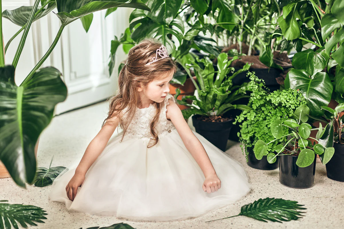 Notre avis : Cette sublime robe blanche de cérémonie, composée de 13 couches de tulle qui lui apportent un aspect volumineux, est idéale pour célébrer les plus beaux moments de la vie. Décorée de fleurs en relief, elle est à la fois délicate et élégante.