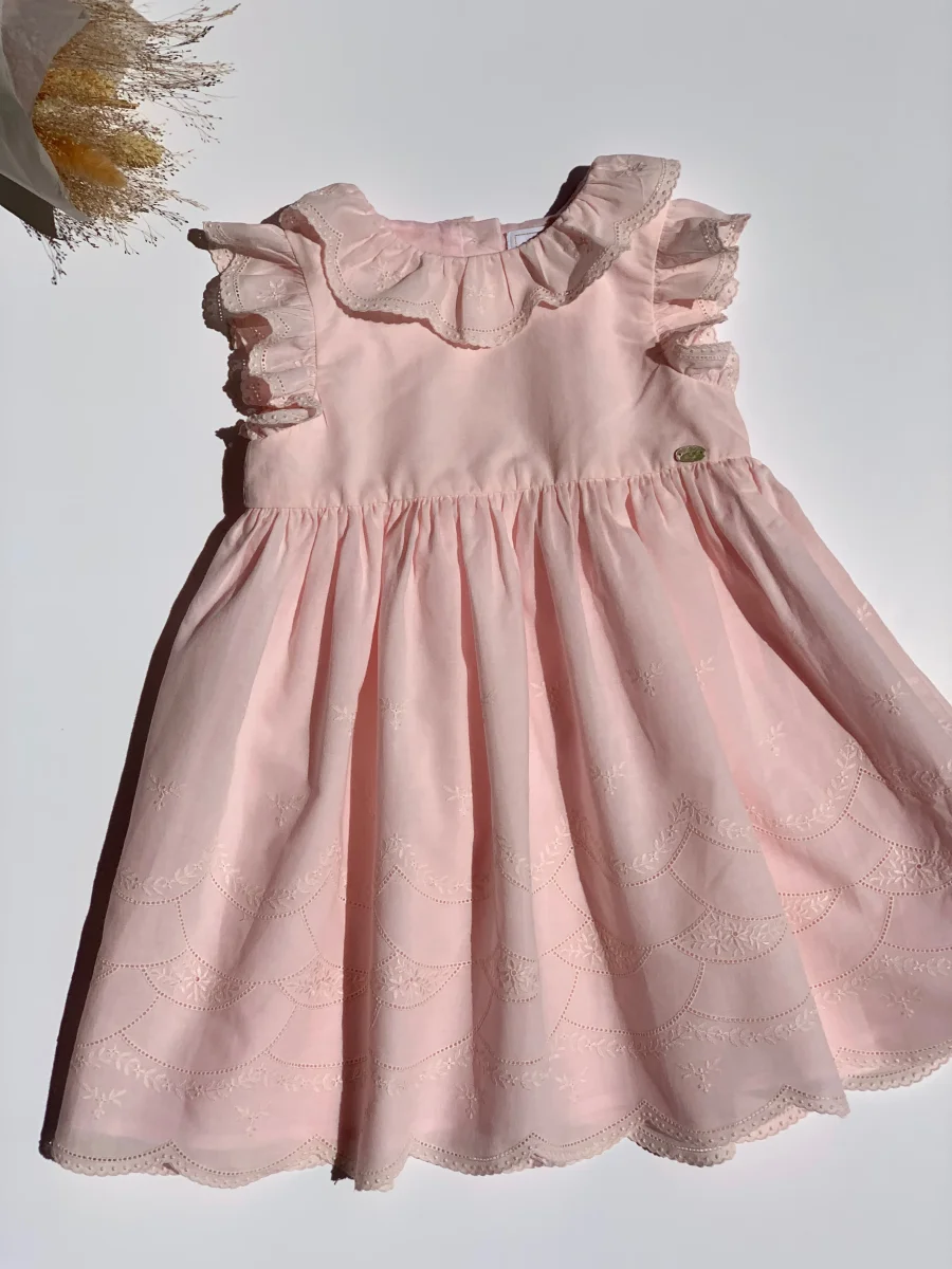 Robe Tartine et Chocolat rose pale voile brodé 6 mois