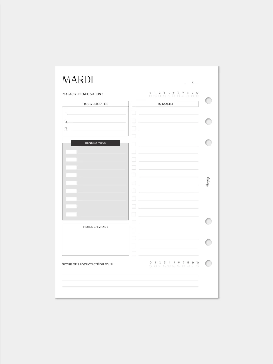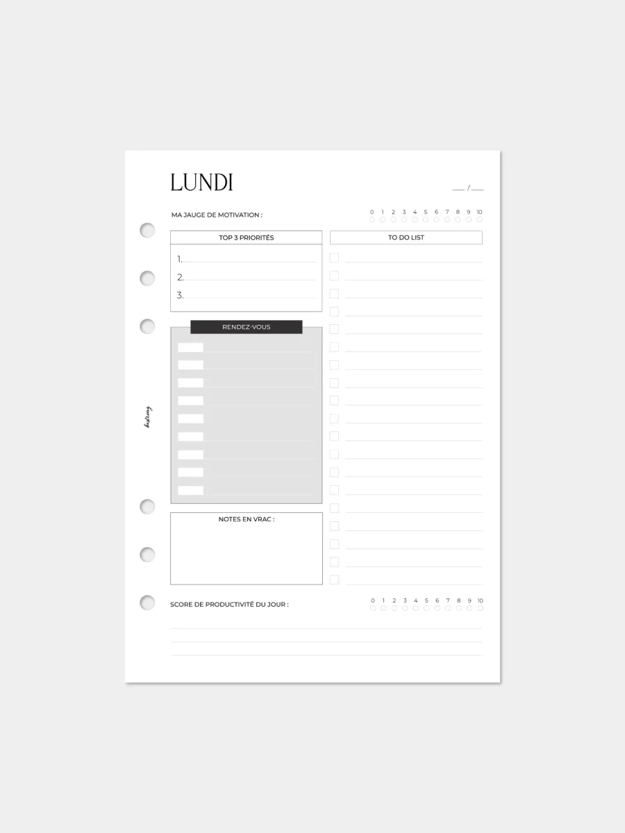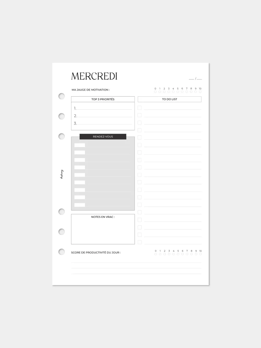 Prends le temps de noter tes principales prioritĂ©s, dĂ©cline ensuite tes tâches annexes pour avancer par Ă©tapes. Ce set de 6 mois te permettra en plus de suivre ton efficacitĂ© : chaque jour Ă©value ton score de productivitĂ©. Description : A5 PerforĂ© Recto-Verso 6 set – 6 mois 108 feuilles ( 216 pages ) De […]