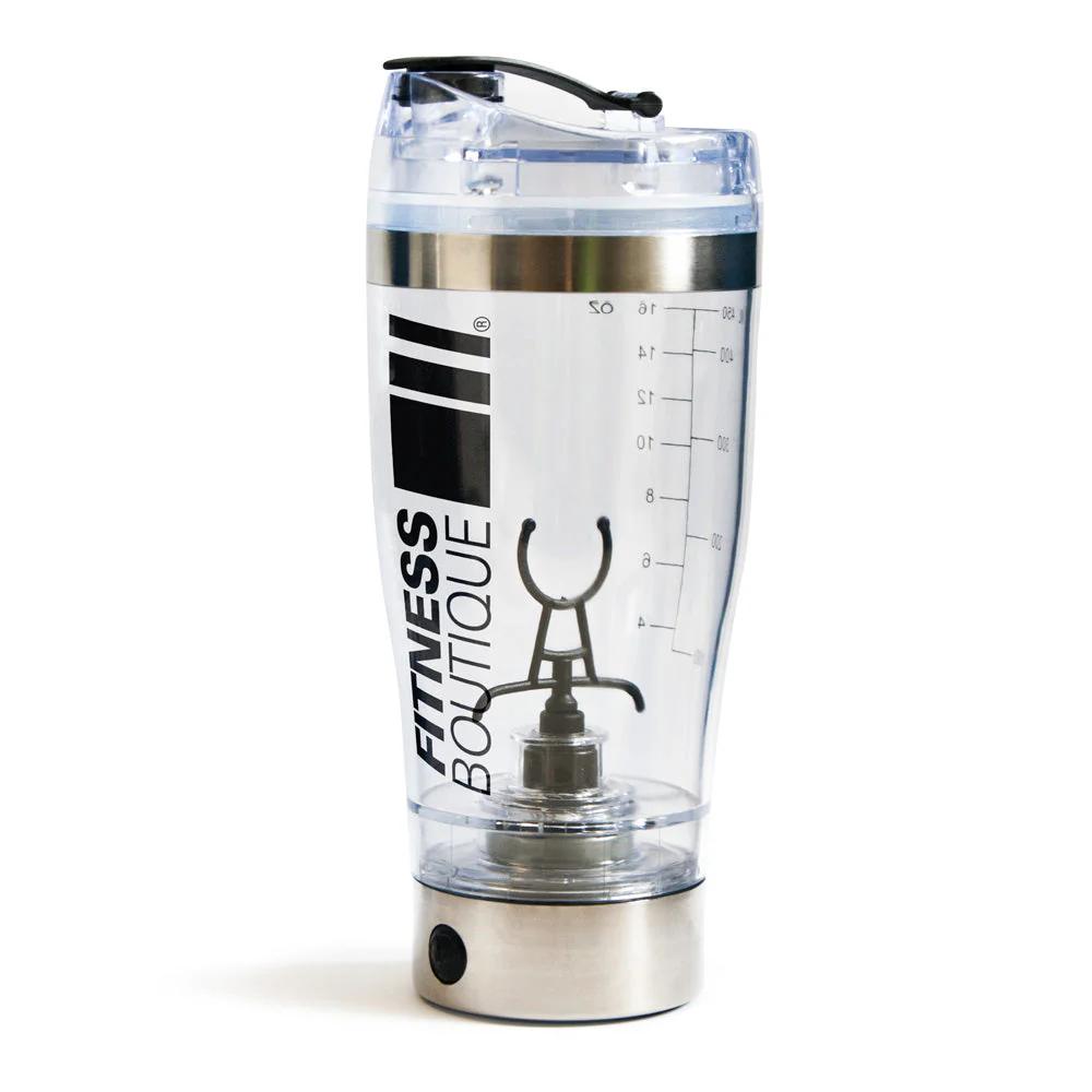 – Un shaker (sans BPA, en plastique alimentaire) avec hélice au fond et graduations en ml et oz sur la façade