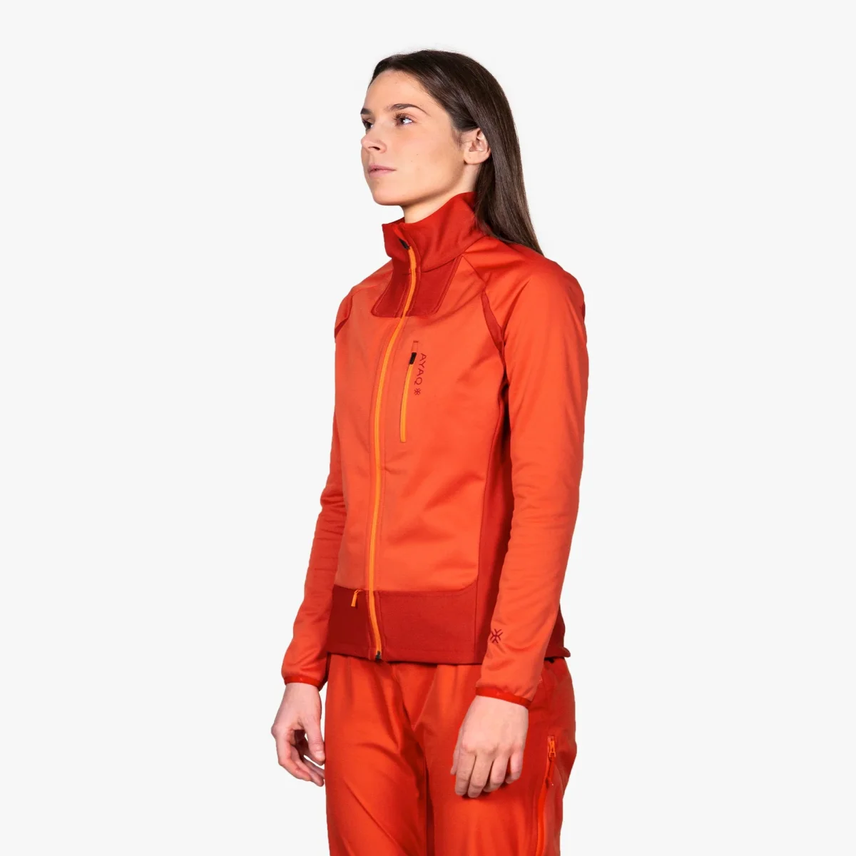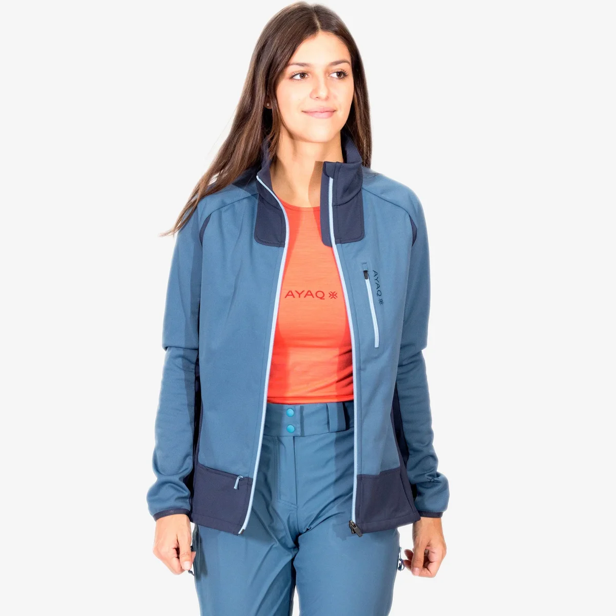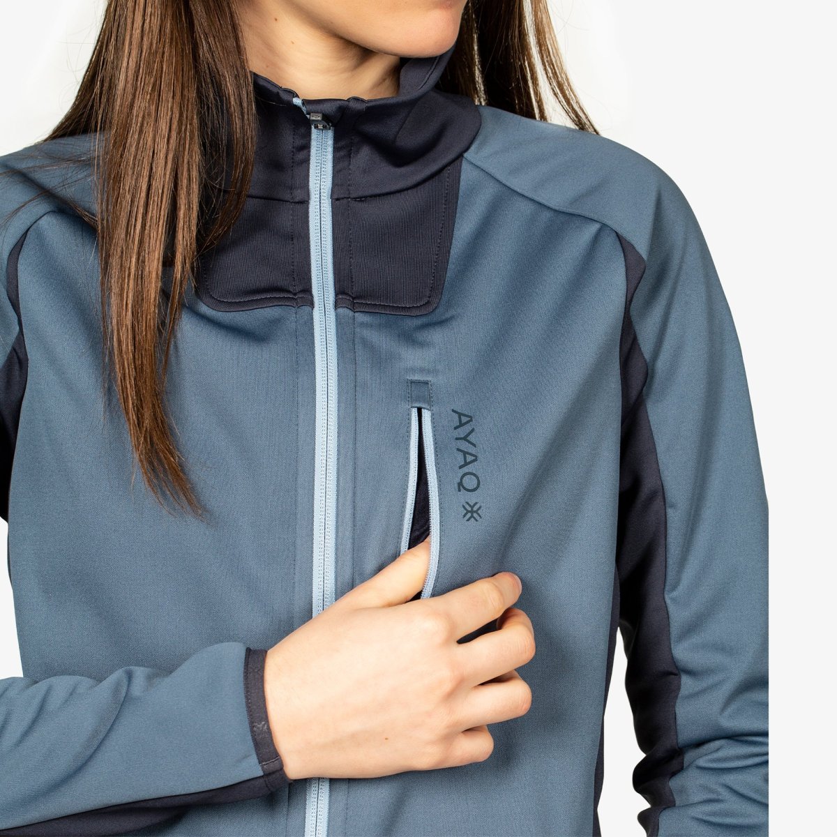 Tissu respirant (France) : Polyester recyclé issu 100% du recyclage de bouteilles en plastique. Tissu 2 couches spécialement développé pour AYAQ, environ 80% de colle en moins qu’un tissu 2 couches classique. Permet une plus haute respirabilité et une meilleure performance environnementale.