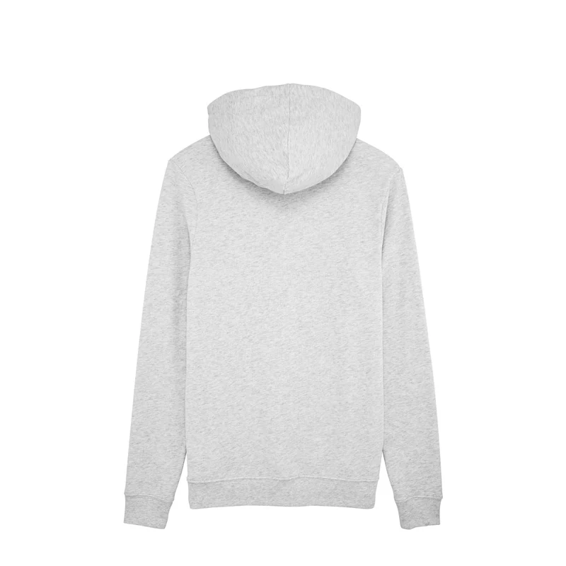 Sweat à capuche léger (220g/m²) couleur blanc chiné, composé à 100% de coton peigné issu de l’agriculture biologique.