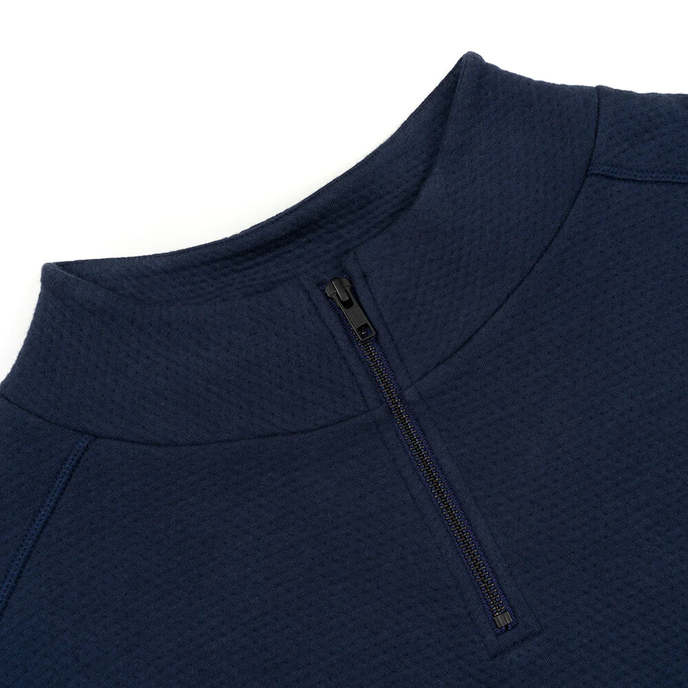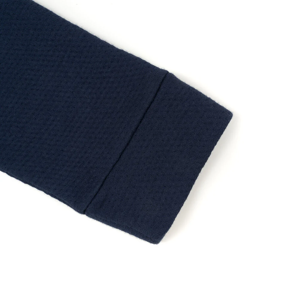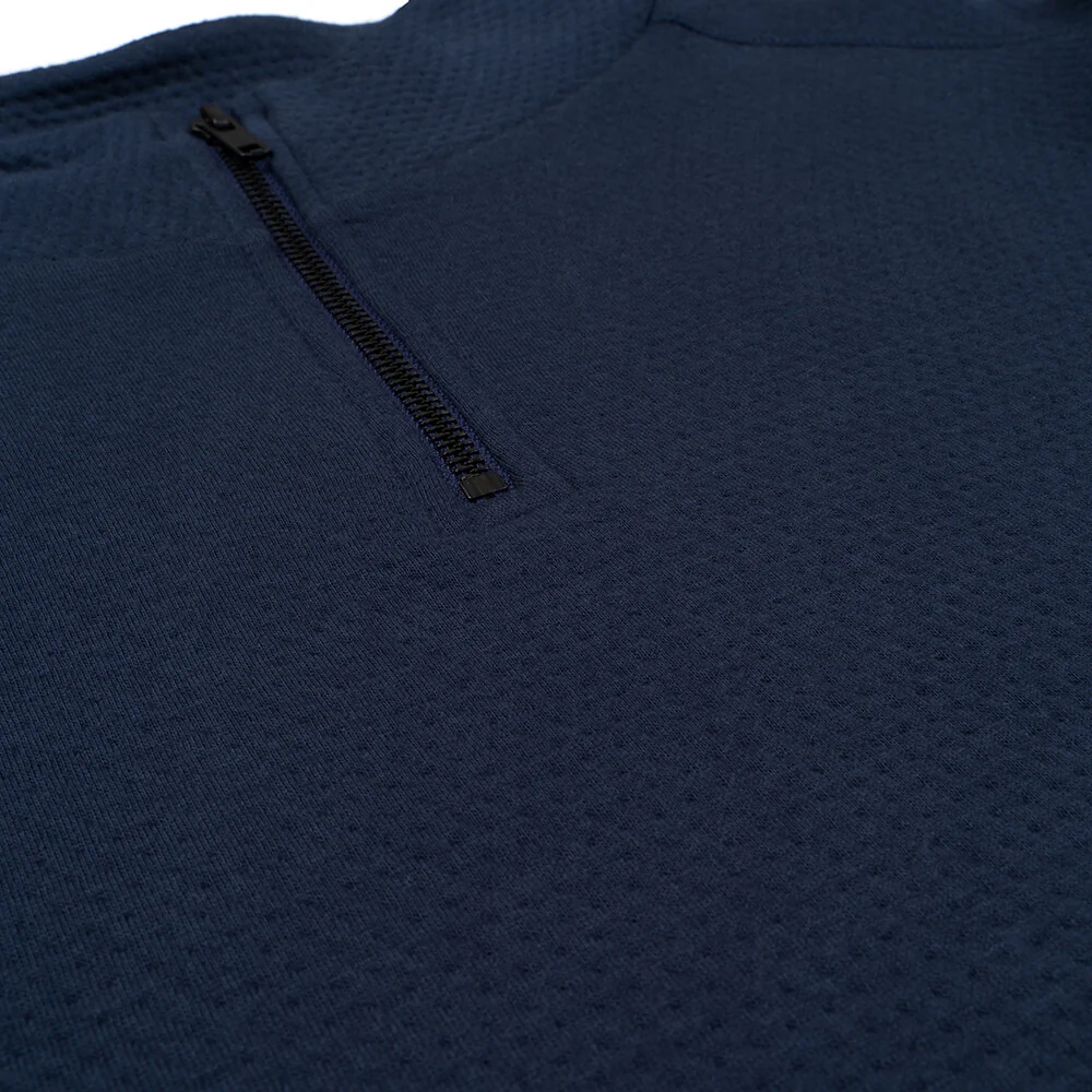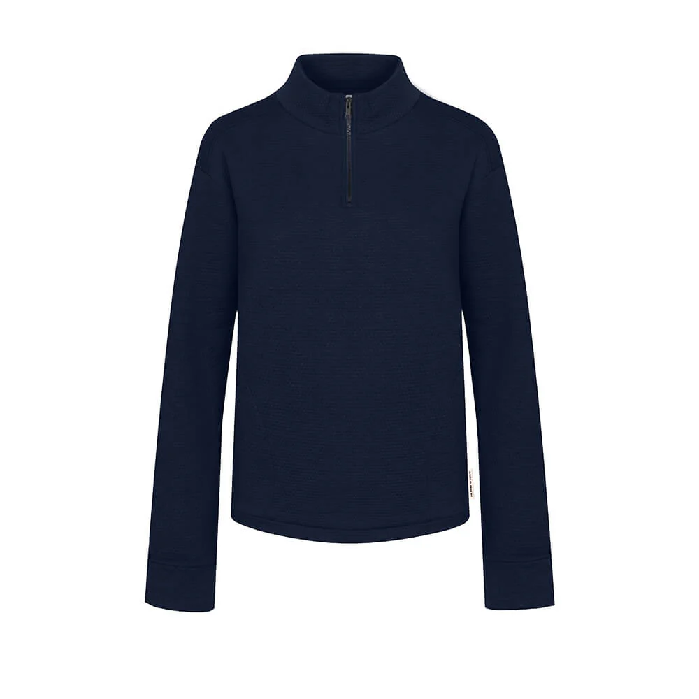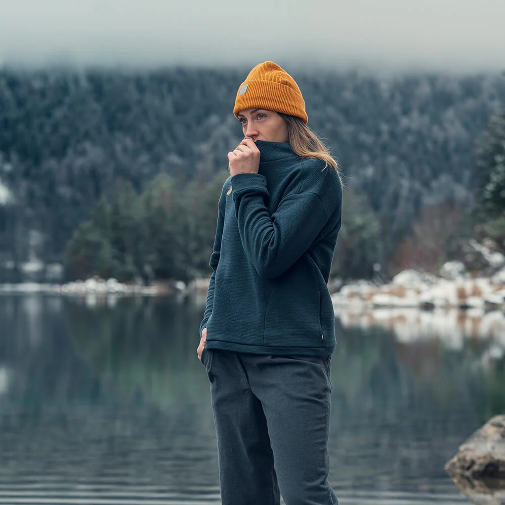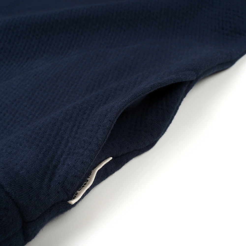 Thanks to soft organic cotton and a relaxed fit with a practical half-zip, our Doublefab jumper is simply super comfortable. The dark blue colour and high neck makes this jumper not just perfect for lounging on the sofa, but also for your day-to-day life. A tip from us: the two side pockets are perfect for smuggling snacks onto the sofa.