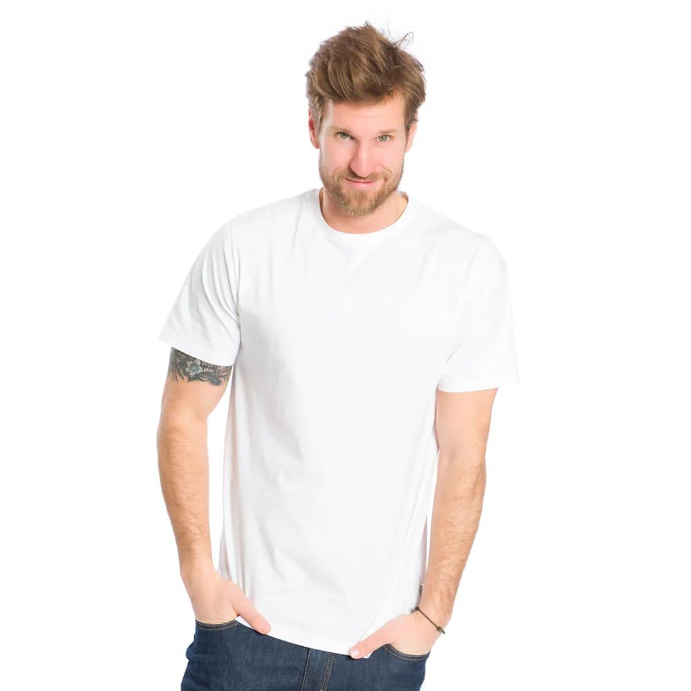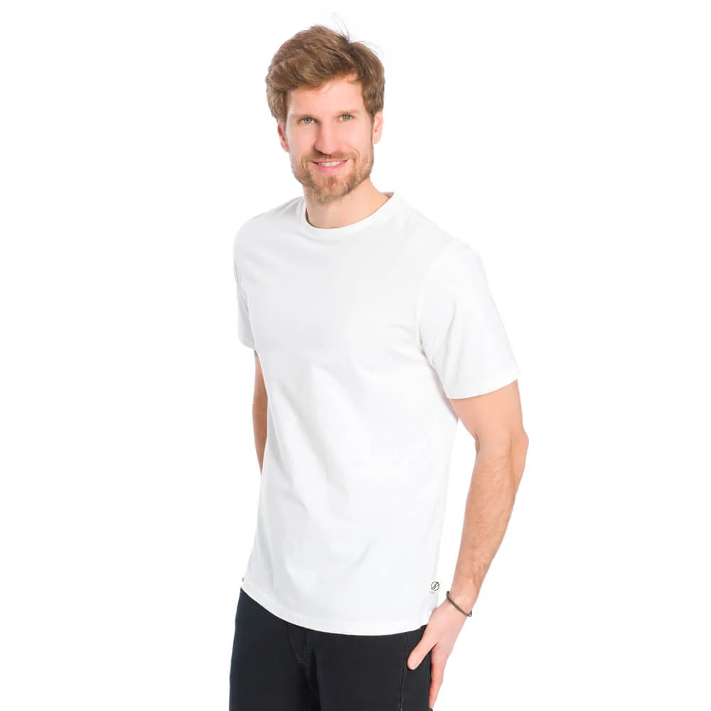 T-shirt blanc pour homme composé de kapok (fibre 100% végétale) et de coton bio, fabriqué en Europe.