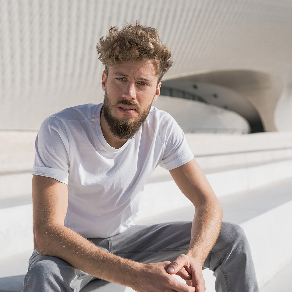 A white T-shirt should be a staple in every wardrobe. It goes with everything, whether you wear it alone with jeans or put it under a jumper. We even have an extra advantage: the material combination we’ve used, a mix of kapok and organic cotton, makes this T-shirt soft and breathable and ensures that you won’t break out into a sweat. The slightly rounded lower hem provides the necessary style factor.