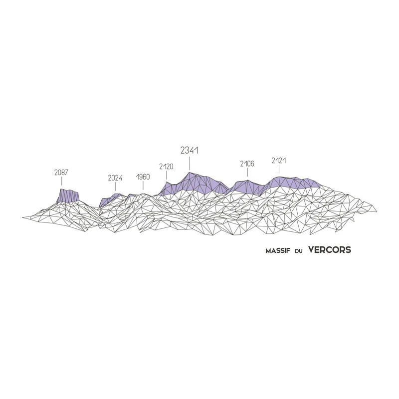 Portez avec vous le Grand Veymont (2341m), le Mont Aiguille (2087m) et d’autres sommets du massif du Vercors sur ce t-shirt éco-responsable ! Pour les amatrices de randonnées estivales, de ski de fond sur les hauts plateaux, et d’escalade sur les impressionnantes falaises du massif.