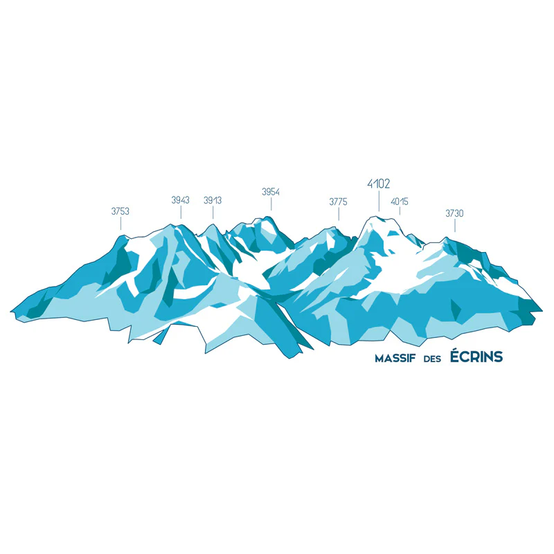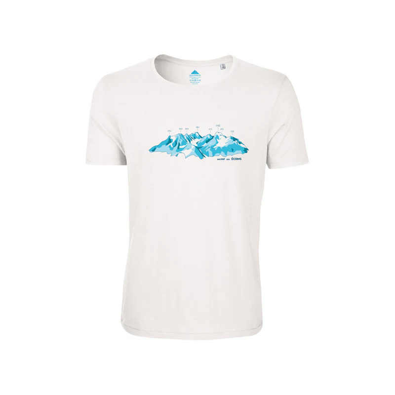 Pelvoux, Ailefroide, Barre des Ecrins… Retrouvez ces sommets mythiques qui ont marqué l’histoire de l’alpinisme sur ce t-shirt éco-responsable du massif des Ecrins !