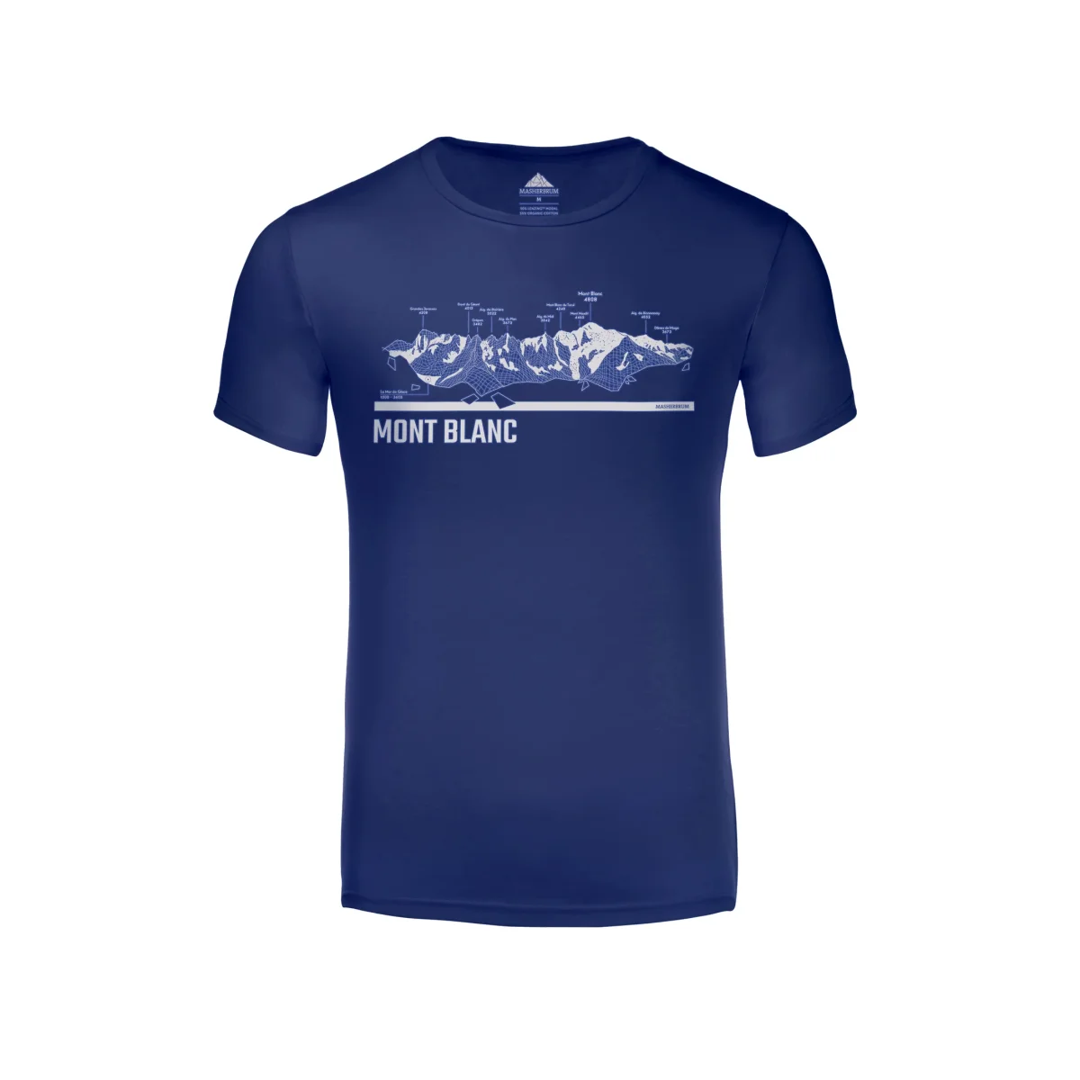 Retrouvez sur ce t-shirt éco-responsable les sommets mythiques du massif du Mont-Blanc.
