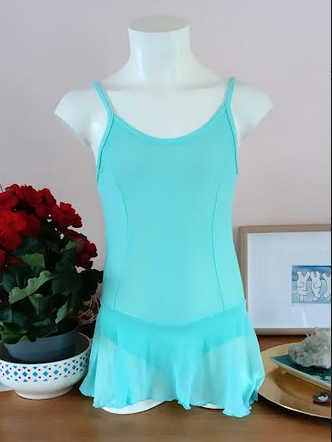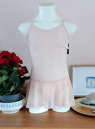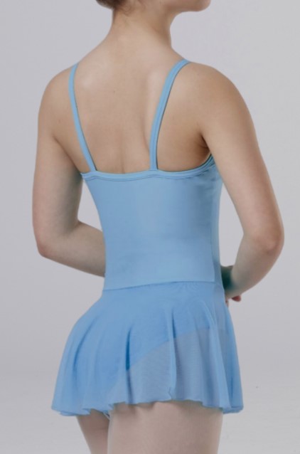 Vicard tunique TN910 en lycra et voile de tulle. Cette petite tunique présente une découpe princesse et est proposée avec des bretelles spaghetti .  Le devant est entièrement doublé.  L’encolure dos est droite.